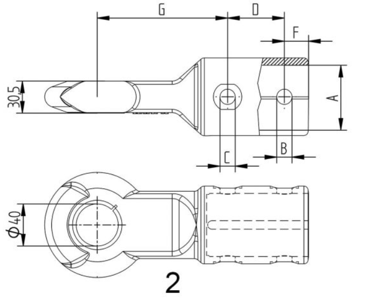 B=14.5 mm / C=14.5 mm / D=54 mm / F=22 mm / G=124 mm