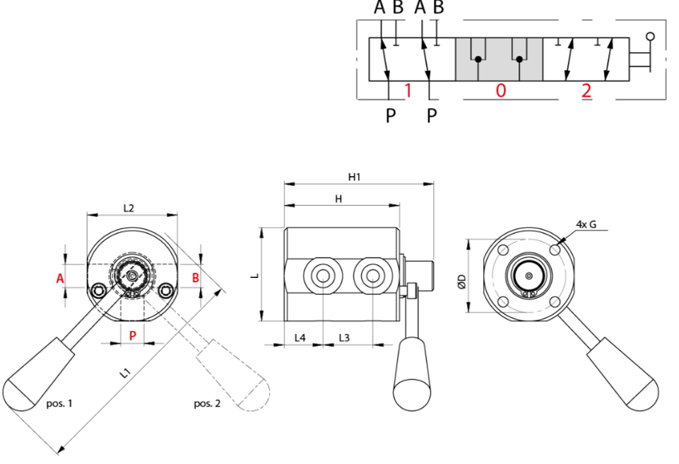 Position 1: P til A og P´ til A´ – B og B´ spærret